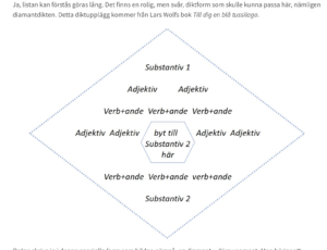 Här kommer en liten teaser:  SKRIV EN DIAMANTDIKT! Kanske använder vi den metoden en av kvällarna!